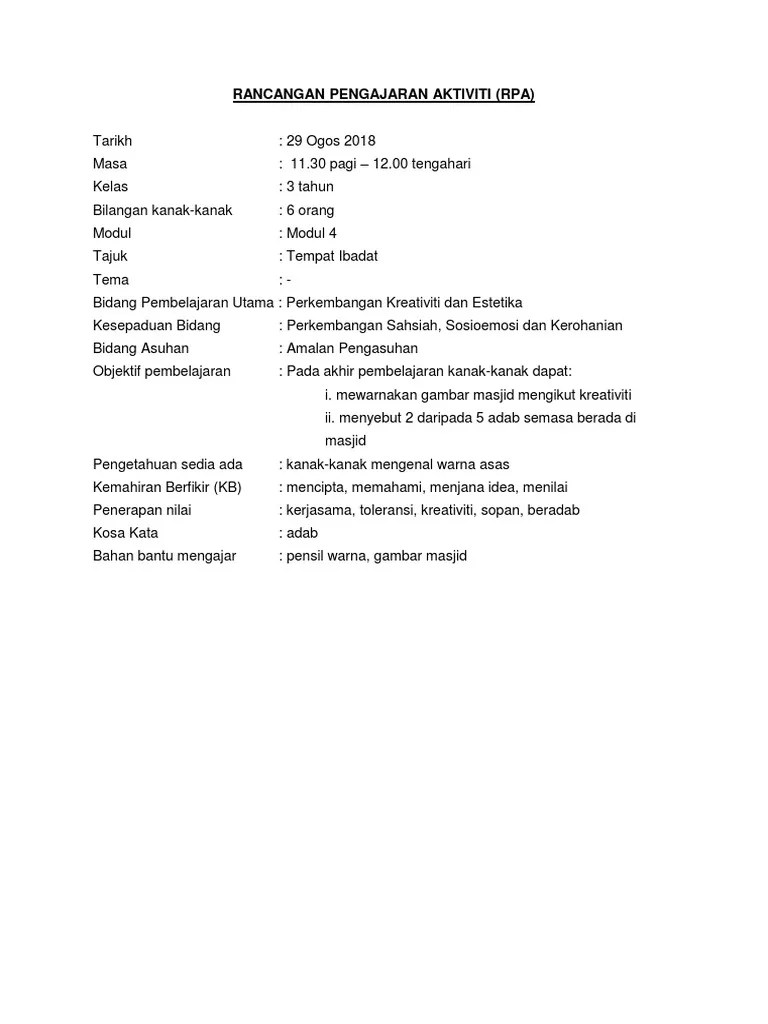 Aktiviti Perkembangan Sahsiah Sosioemosi Dan Kerohanian 4 Tahun : Contoh Rpa Perkembangan Bahasa Komunikasi Dan Literasi Otosection