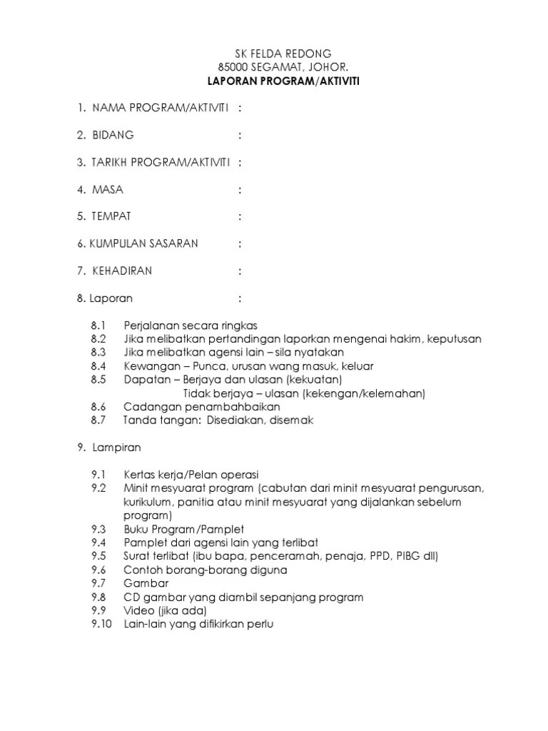Contoh laporan format laporan aktiviti. Format penyediaan laporan aktiviti muka hadapan kulit laporan tajuk aktiviti tarikh dan lokasi nama penganjur tarikh laporan disediakan . Format laporan ringkas aktiviti dan program ppwk didik hibur 2917. Pdf contoh format laporan aktiviti laporan aktiviti universiti kebangsaan malaysia nur fatihah academia edu. Program bersama alumni fakulti sains 2017.